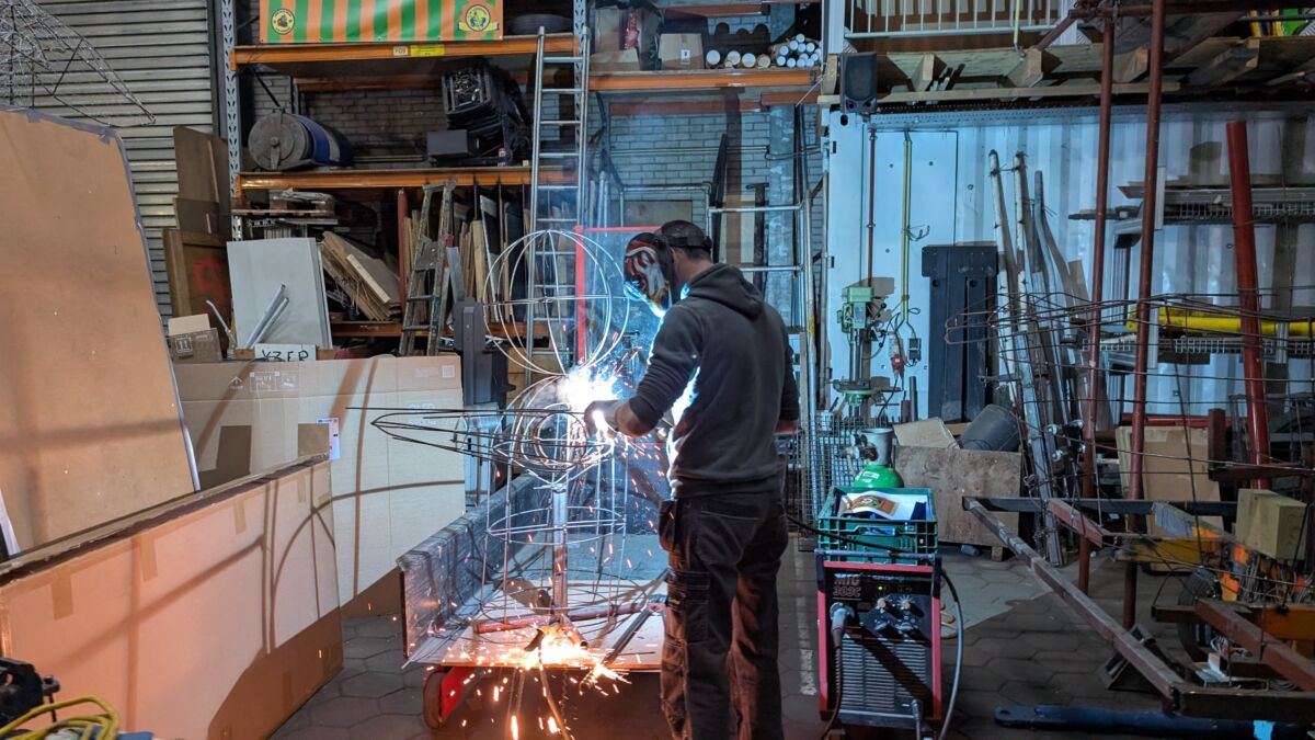 Buurman Maykel en Toffe Peer zijn verder gegaan met het afwerken van de ballon. deze is nu klaar voor de lak!